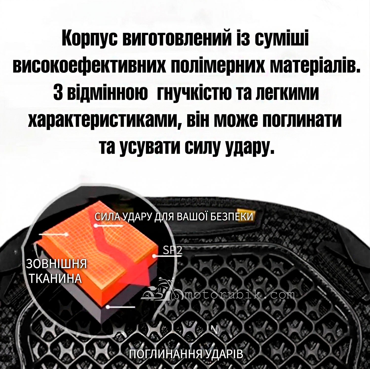 - Гнучкість та легкість: Використання поліетилену (PE) та ЕВА дозволяє жилету повторювати рухи тіла, не обмежуючи керування байком.