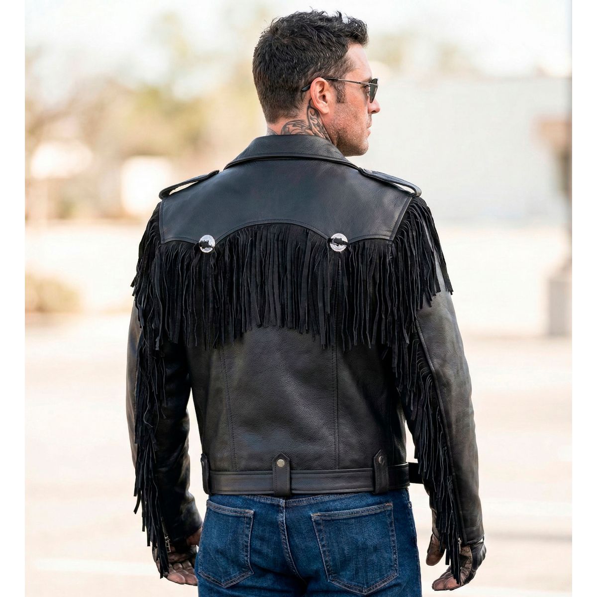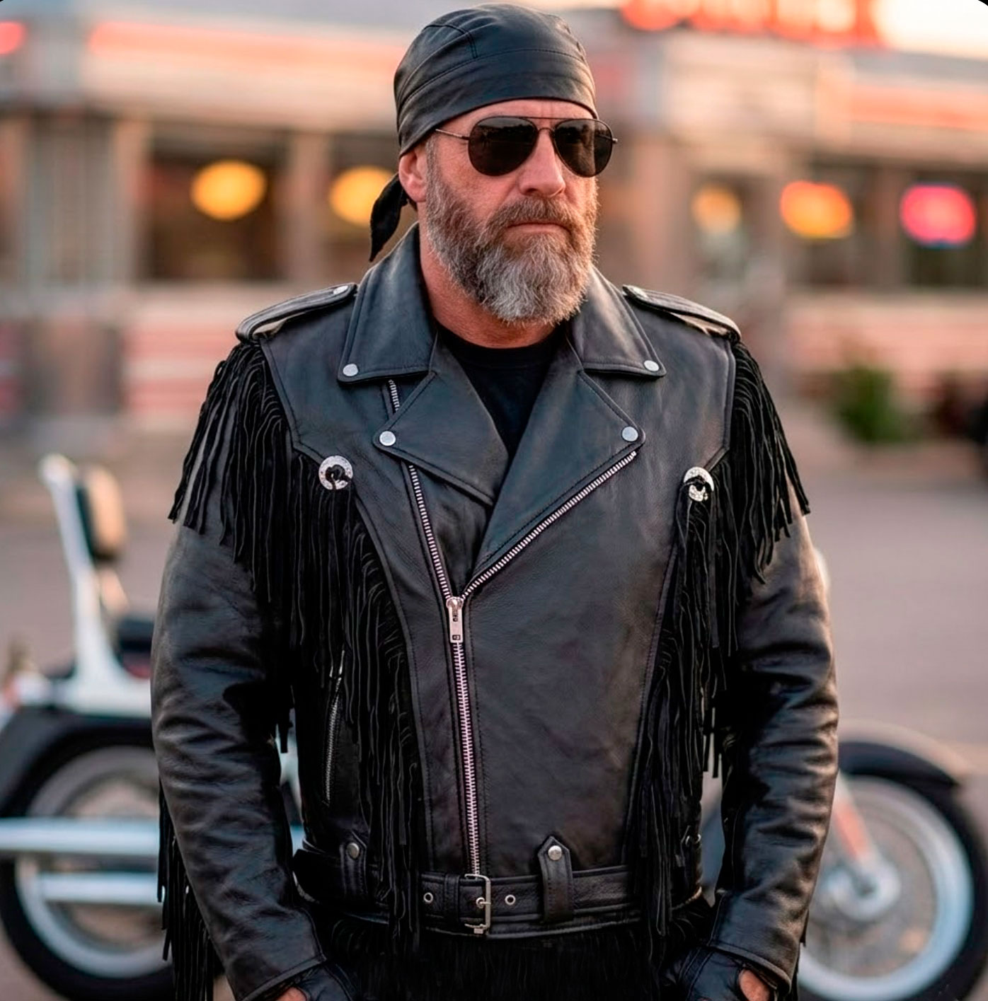 - Стиль Chopper: Куртка декорована чотирма кончо (два спереду та два ззаду), що підкреслюють індивідуальність власника.