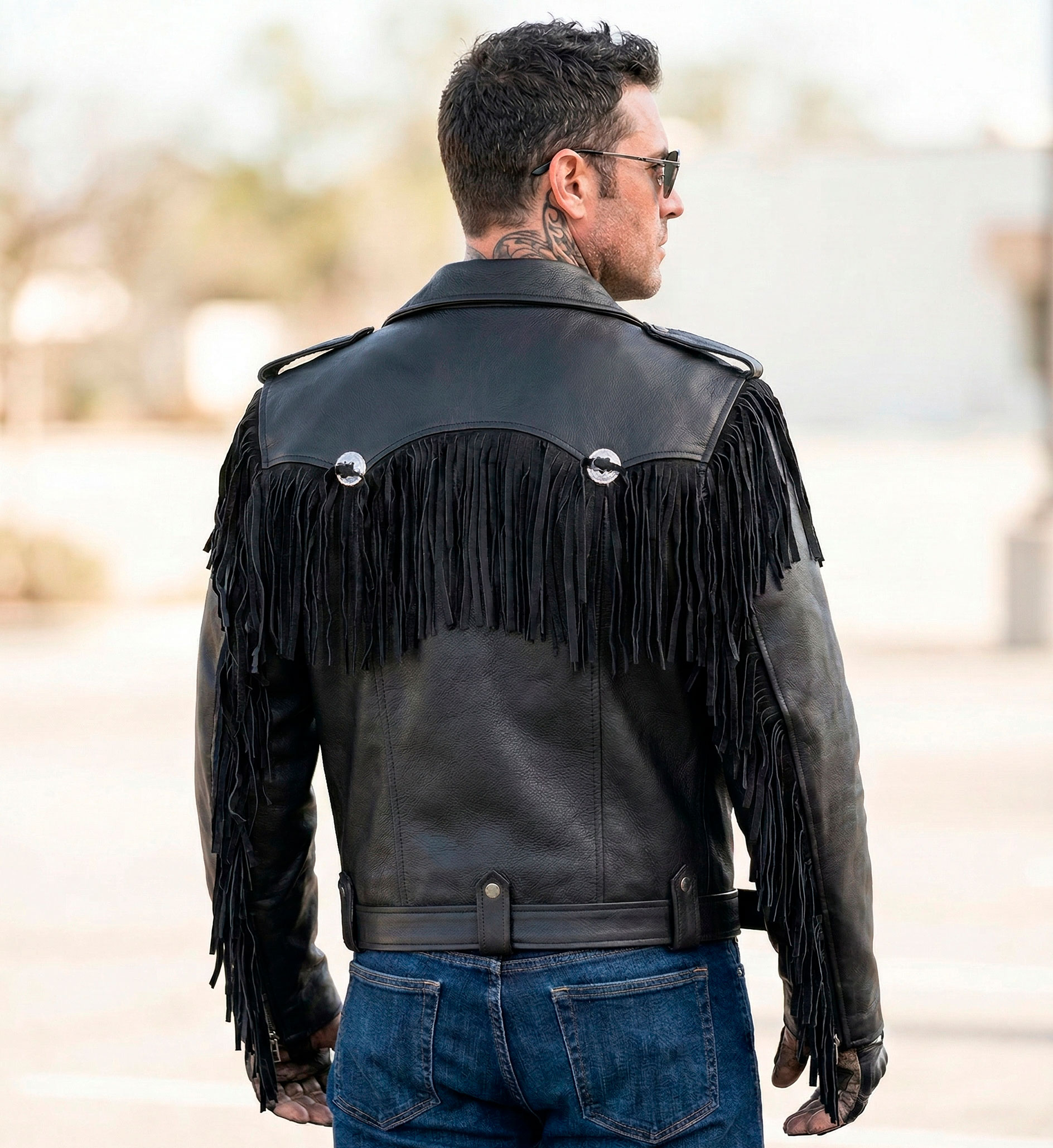 - Автентична бахрома: Розташована на нижній частині рукавів та спинці, створюючи динамічний рух під час їзди.