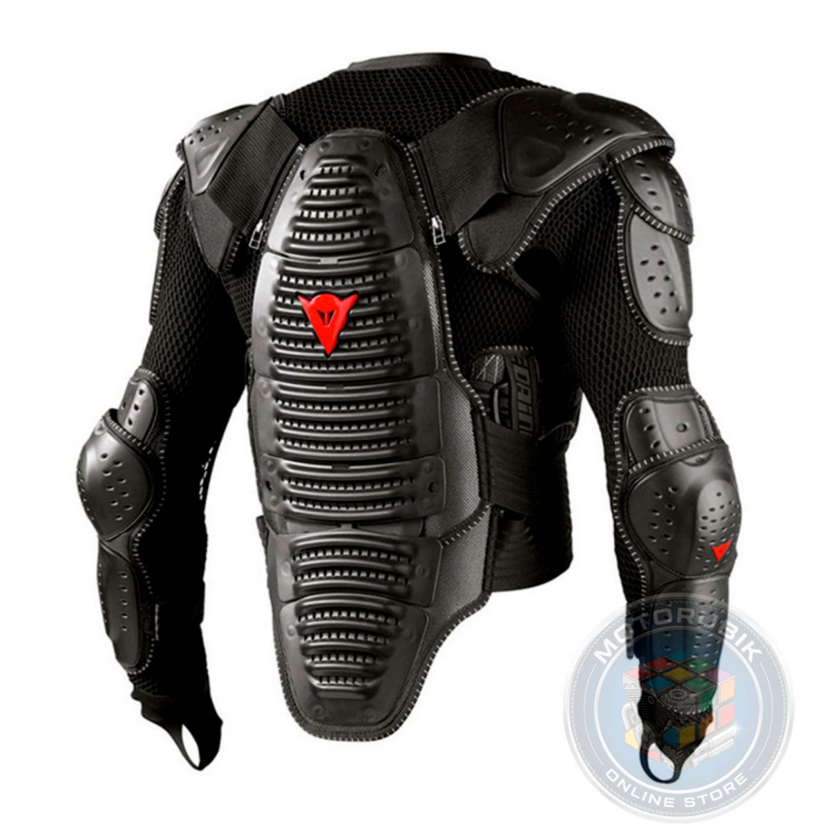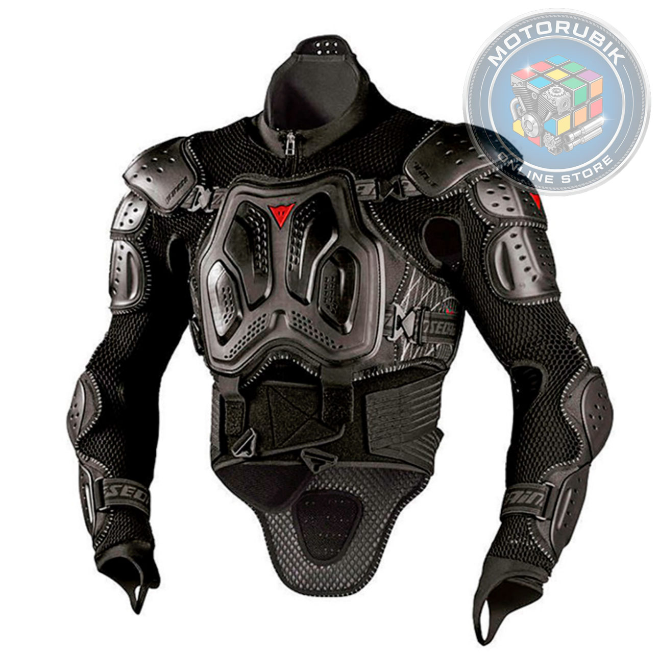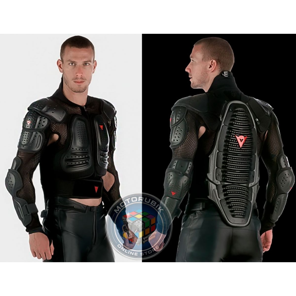 - Ергономіка та комфорт: Артикульовані пластини та запатентований поперековий шарнір дозволяють захисту ідеально повторювати рухи тіла мотоцикліста, не сковуючи їх.