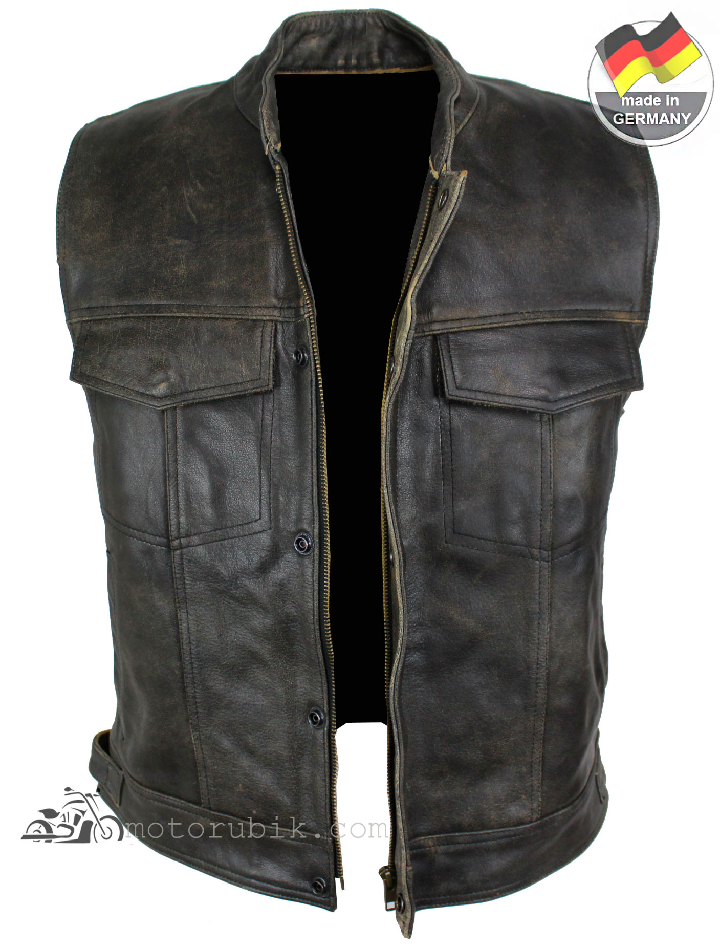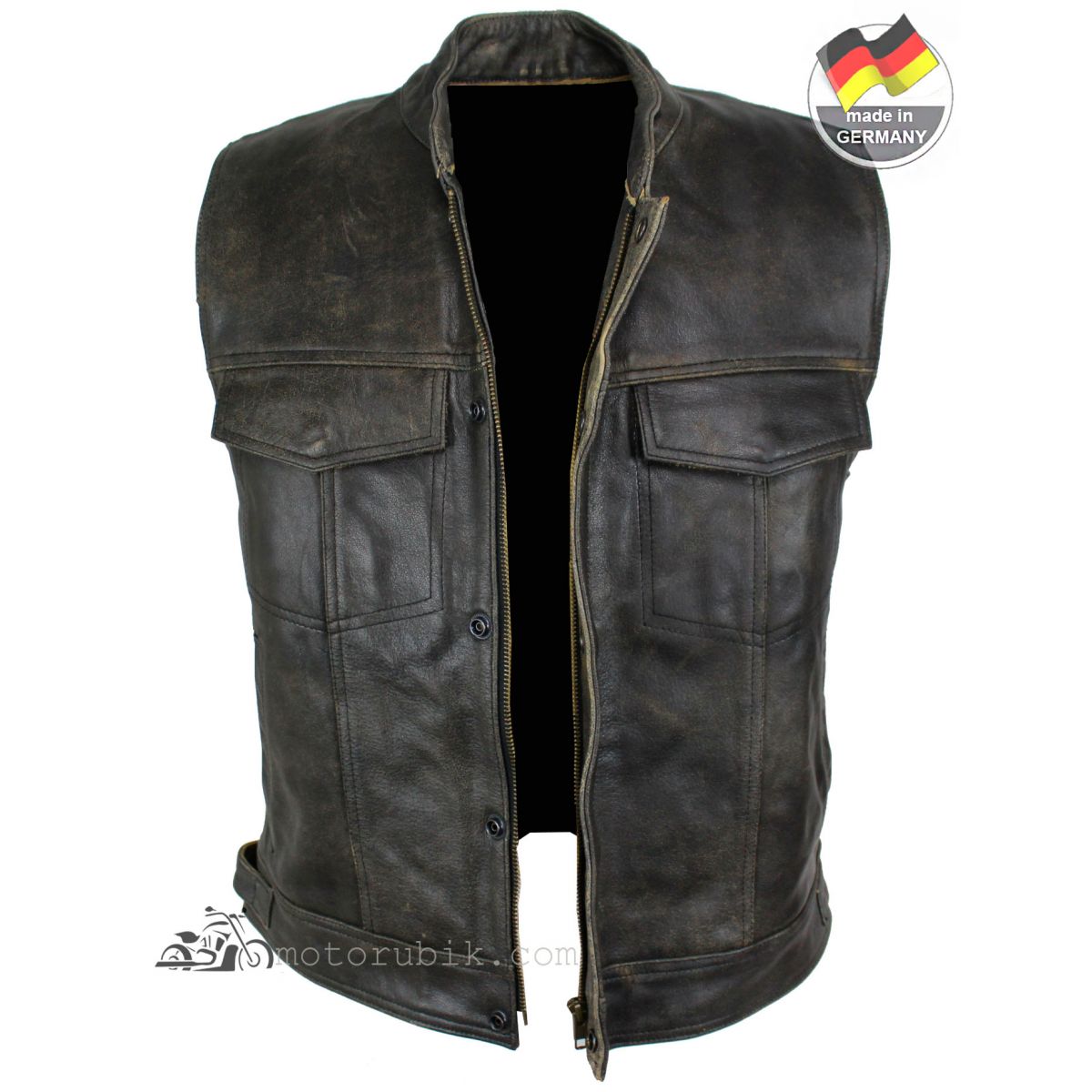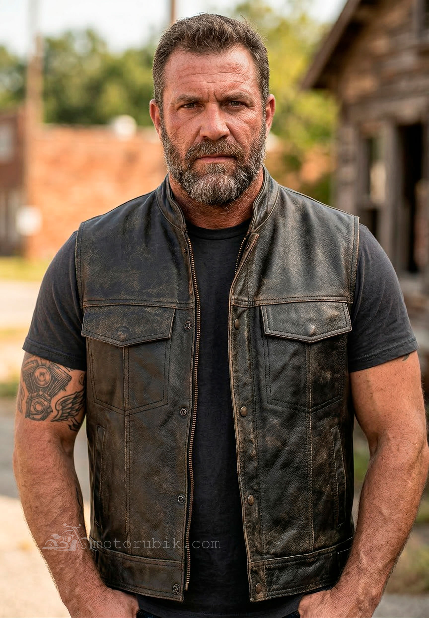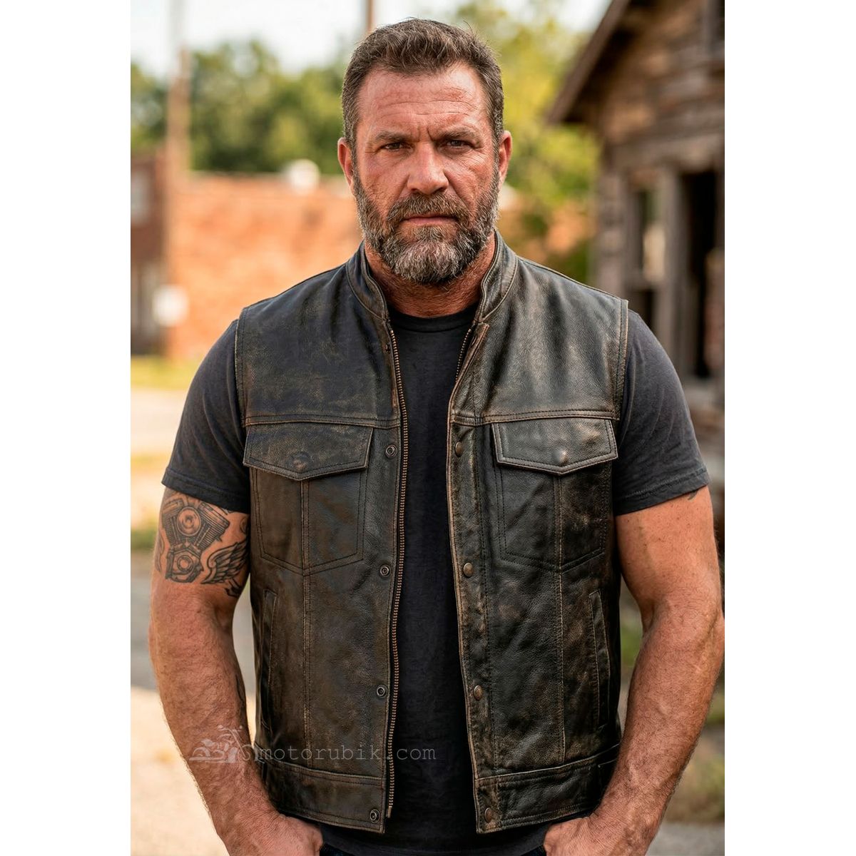 Додайте своєму образу брутальності та автентичного стилю з класичним мотоциклетним жилетом. Виконаний у вінтажному кольорі «коричневий крекер», цей жилет ідеально підходить як для поїздок на байку, так і для повсякденного рокерського гардероба.
