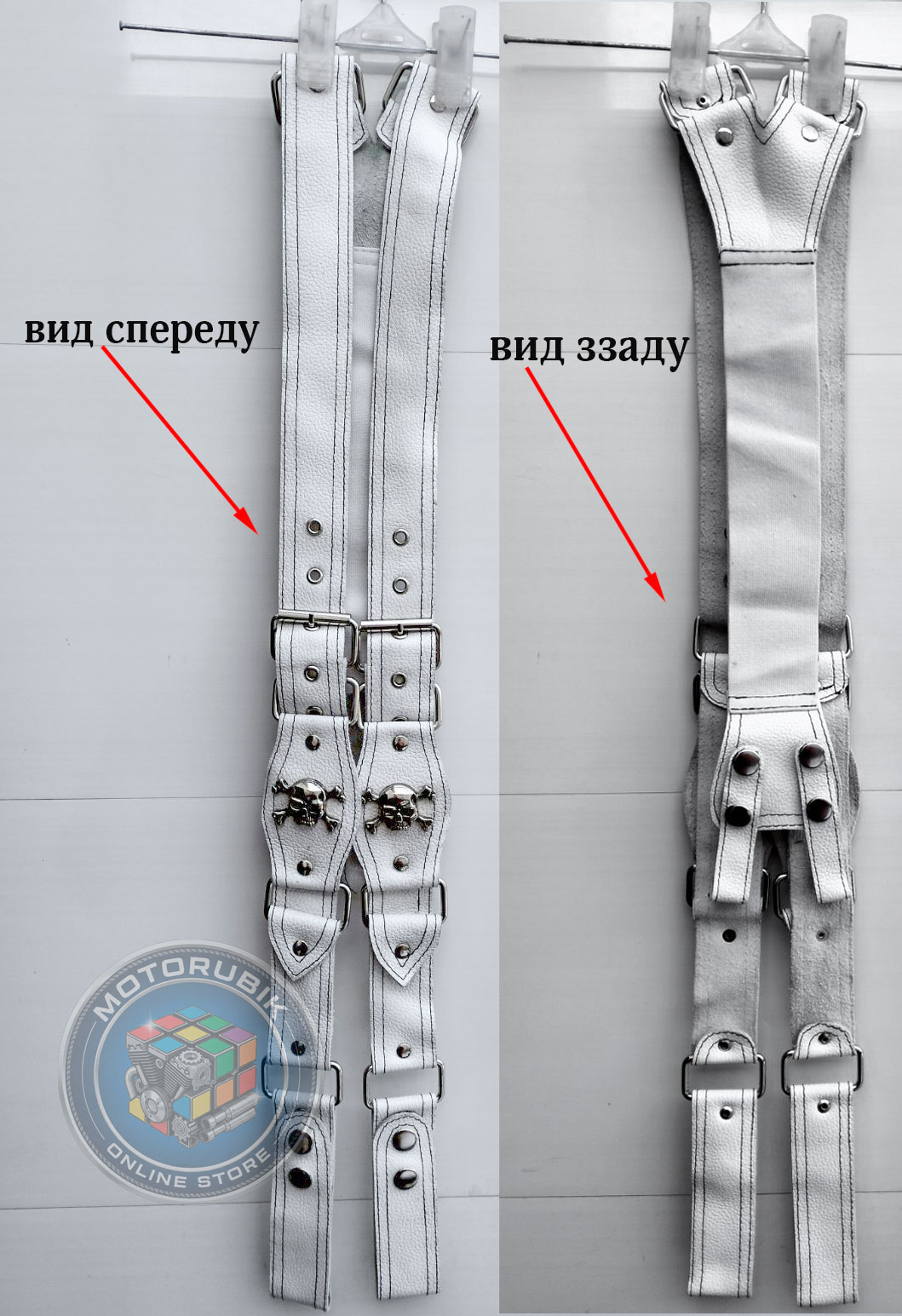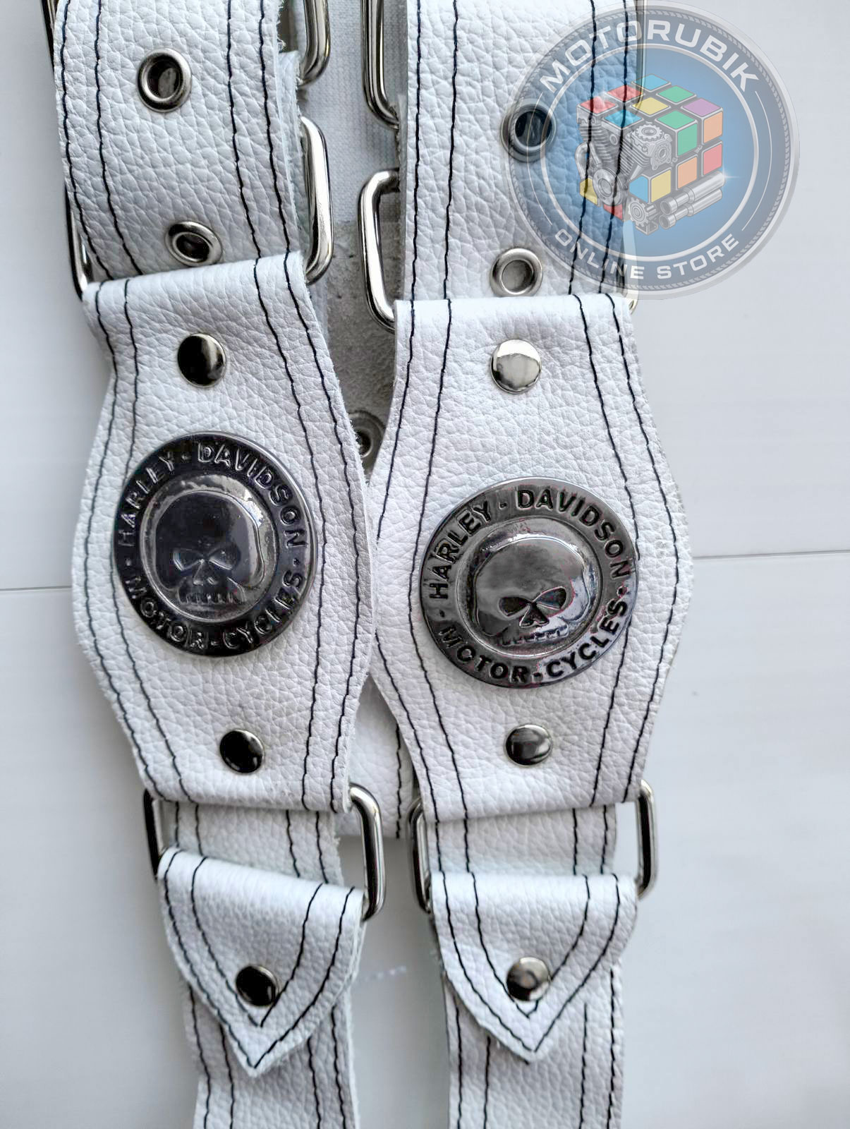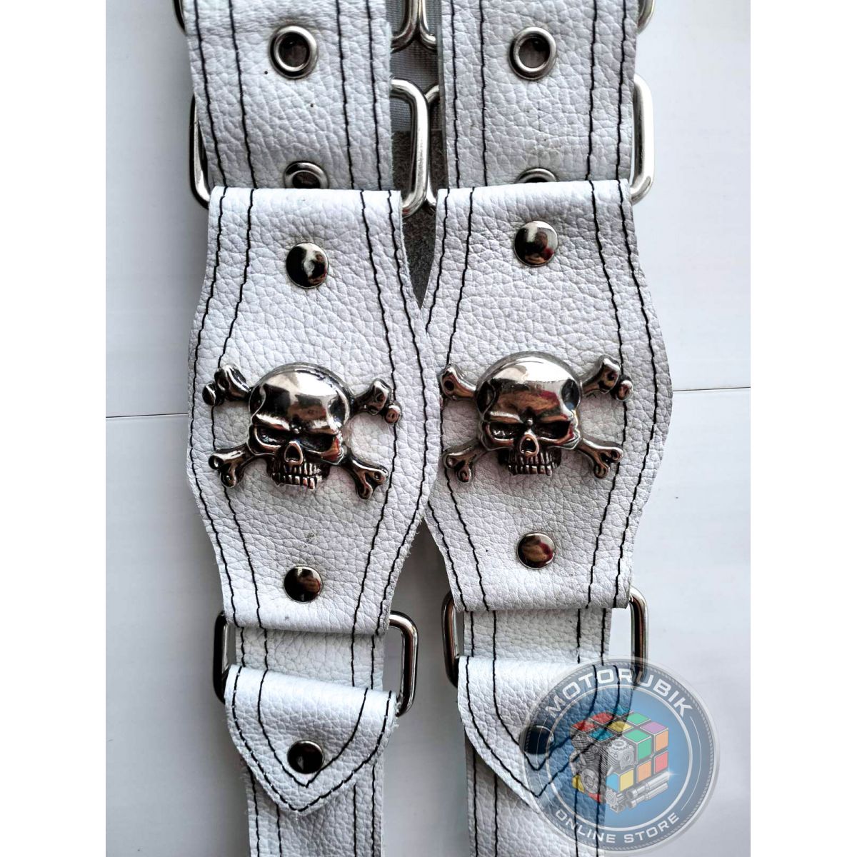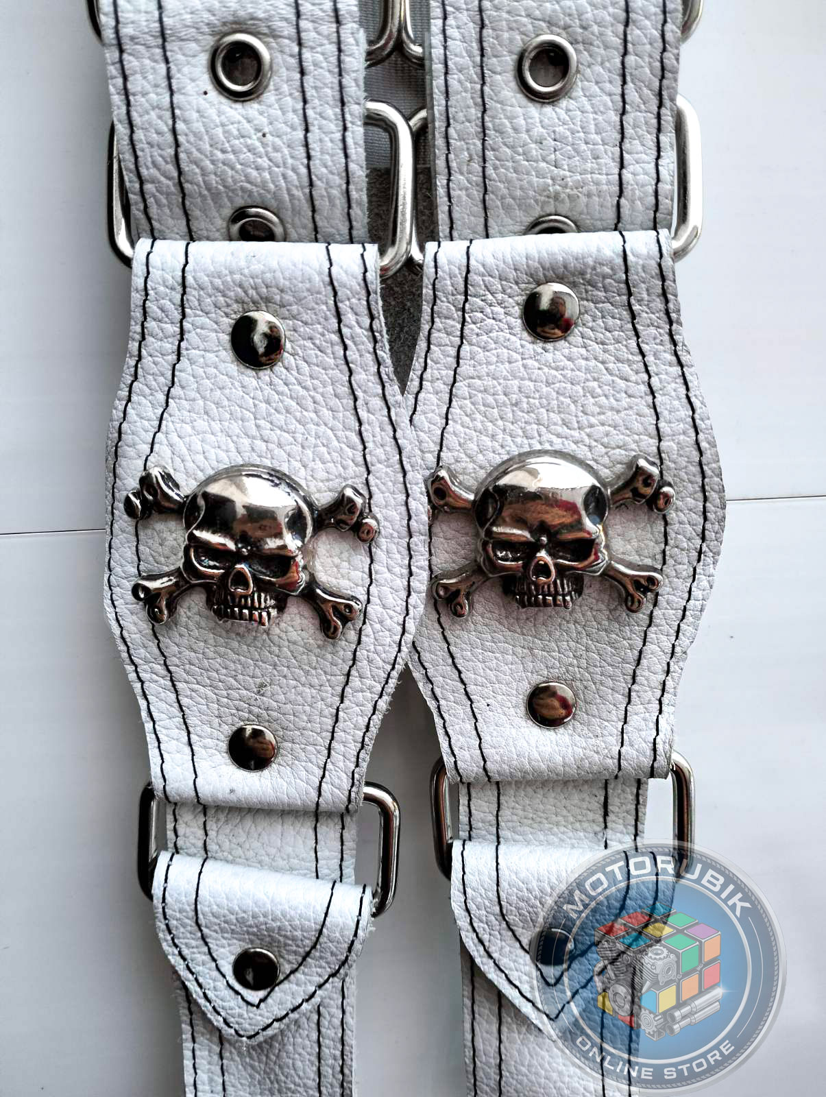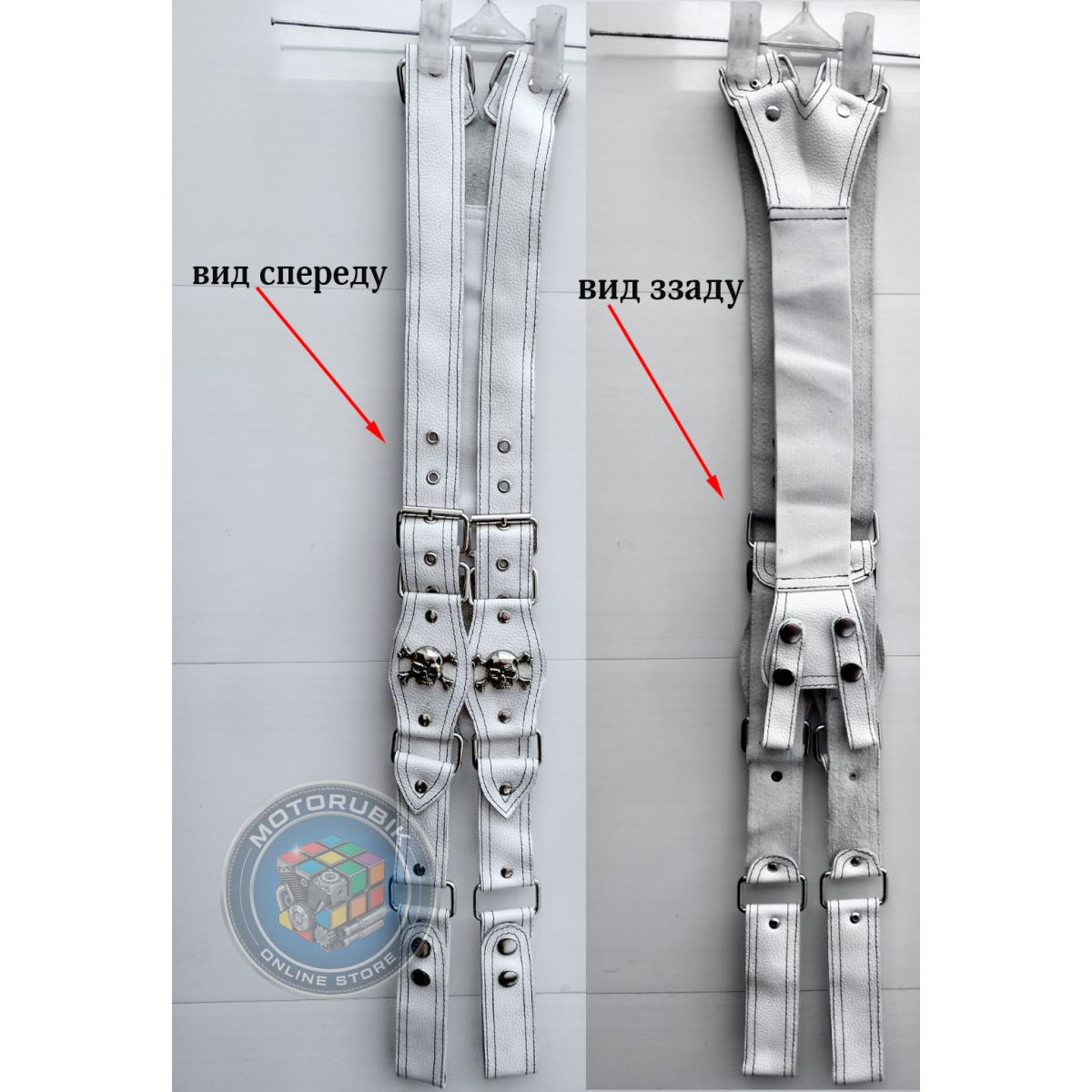 Байкерські шкіряні підтяжки ручної роботи (білі)