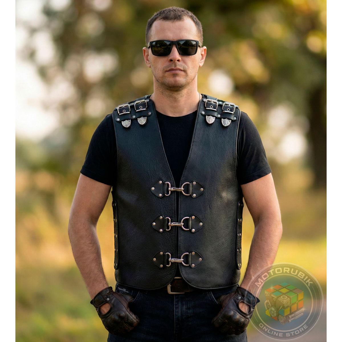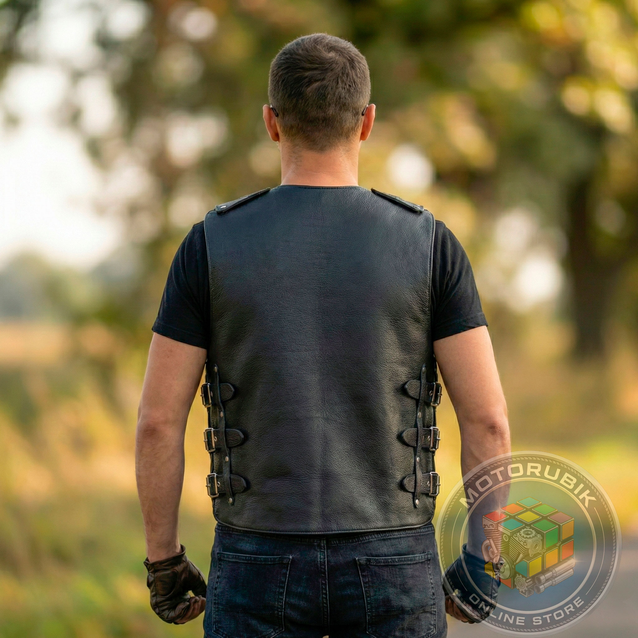 - Універсальність: Завдяки системі регулювання розміру, жилет легко можна одягнути поверх шкіряної куртки або косухи, що робить його практичним рішенням для будь-якої погоди.