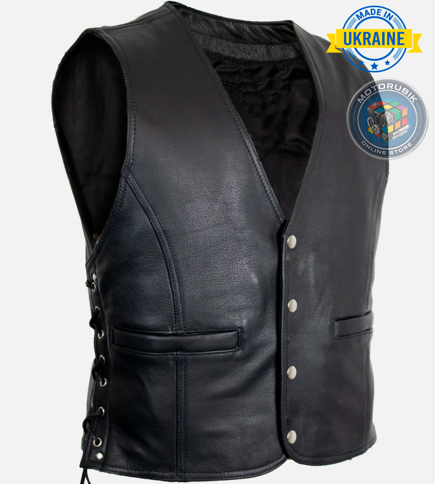 Представляємо безкомпромісну класику для цінителів надійності та стилю. Цей жилет виготовлений вручну з відбірної 100% телячої шкіри, що гарантує довговічність та бездоганний зовнішній вигляд протягом років.