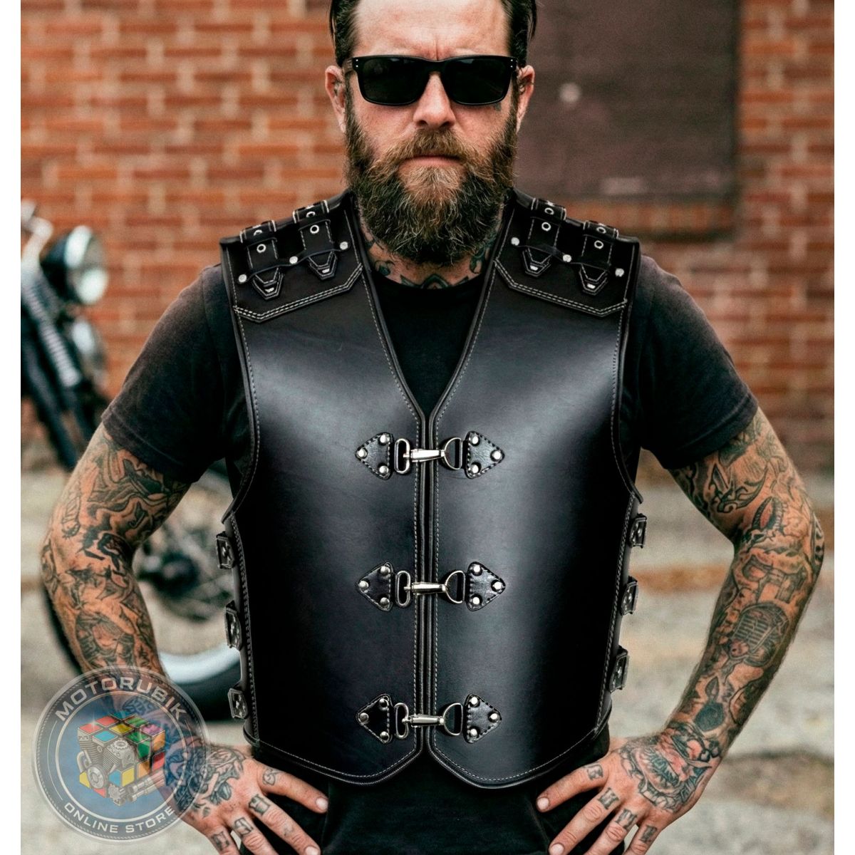 Збільшуючи розмір при розпусканні пряжок жилет розміру легко можна одягнути поверх косухи або куртки.