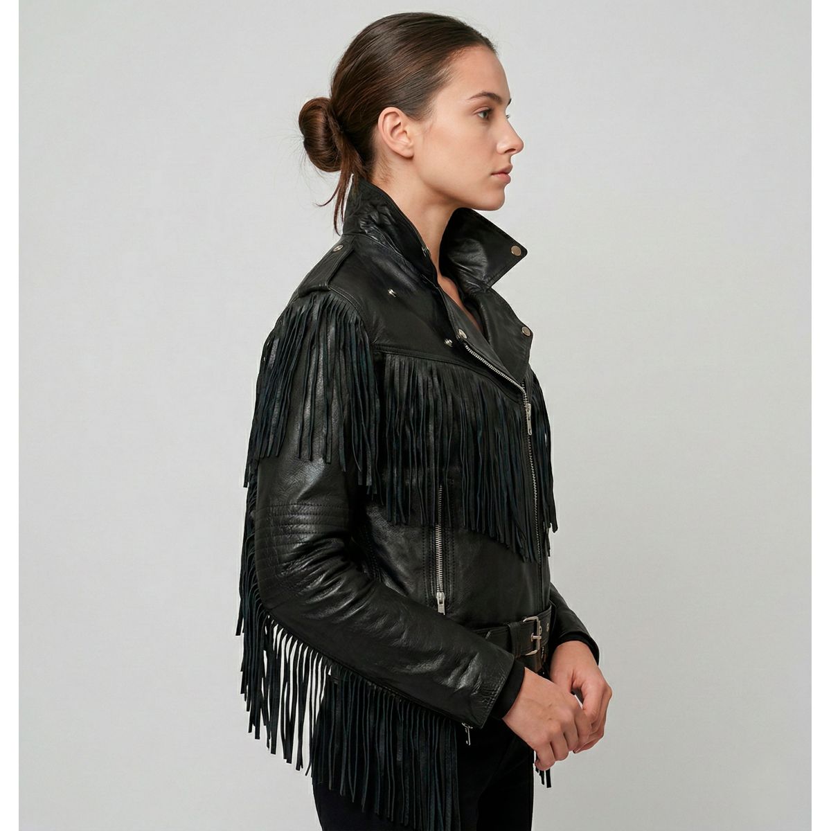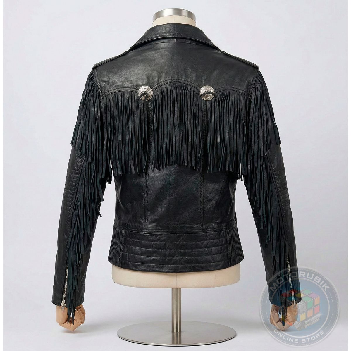 Динамічний дизайн: Розкішна бахрома на рукавах, грудях та спині додає образу виразності та руху.