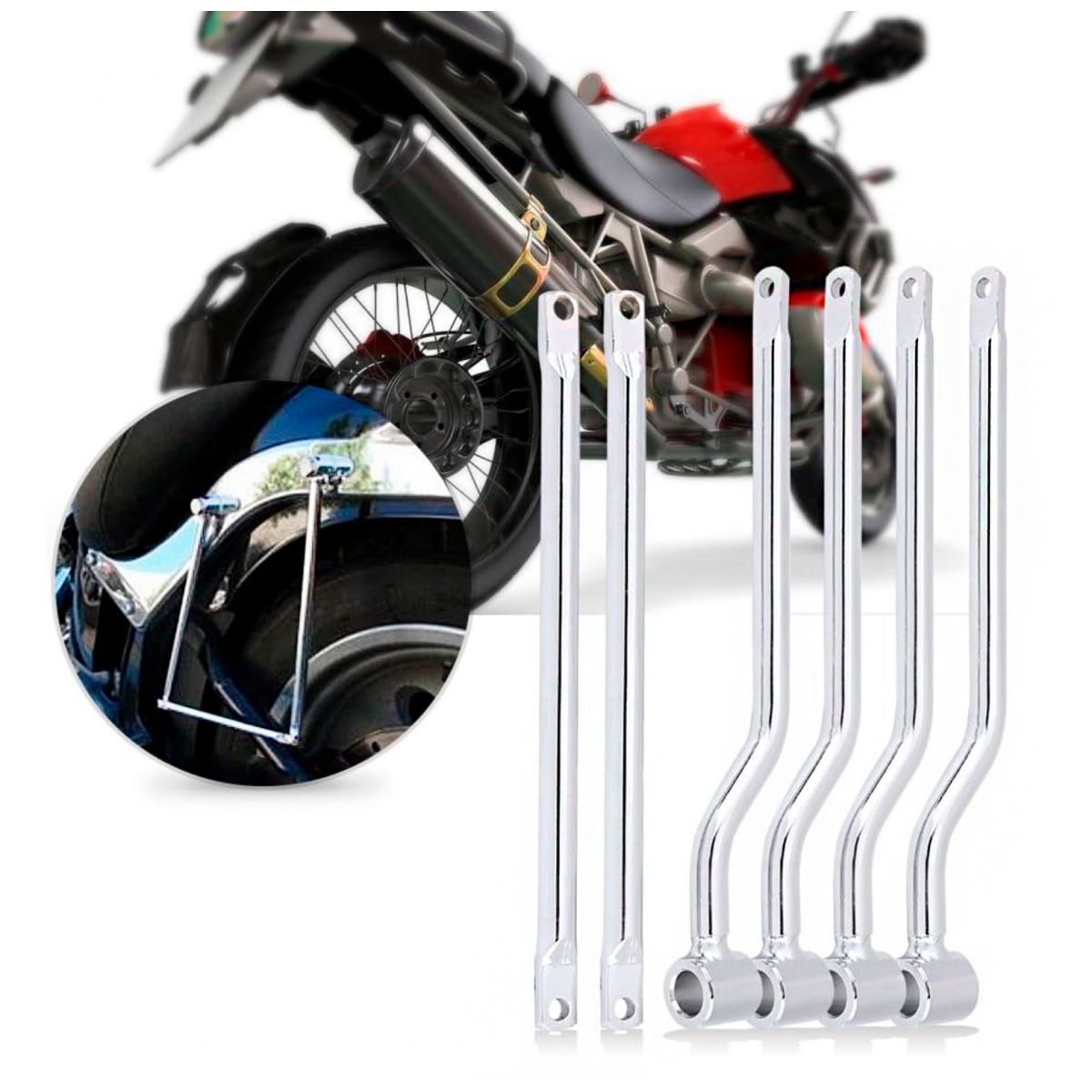 Служать для допоткового кріплення кофрів, підтримки їх у строго вертикальному положенні та запобіганню попадання кофра між крилом та колесом мотоцикла.
